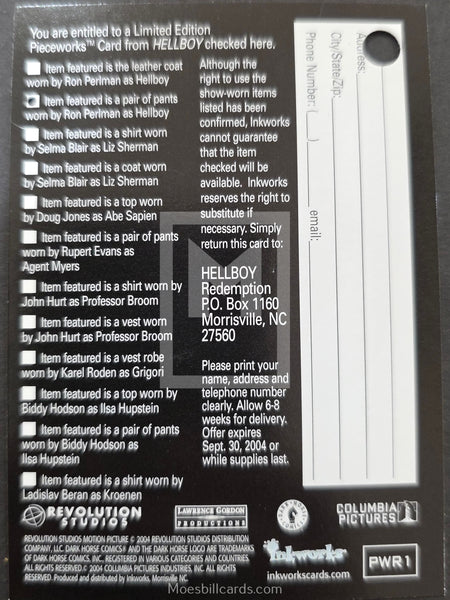 You are looking at an Pieceworks Trading card from Hellboy (Movie).