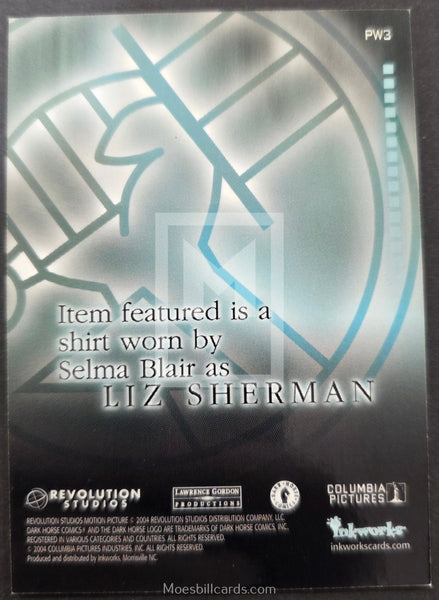 This card is number PW3 and features a Red coloured swatch of a Shirt worn by Selma Blair as Liz Sherman.