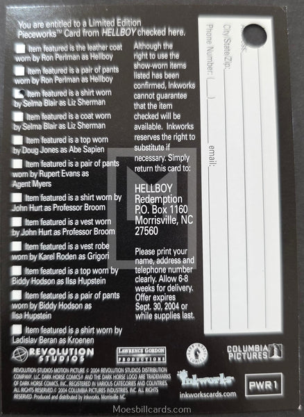 You are looking at an Pieceworks Trading card from Hellboy (Movie).