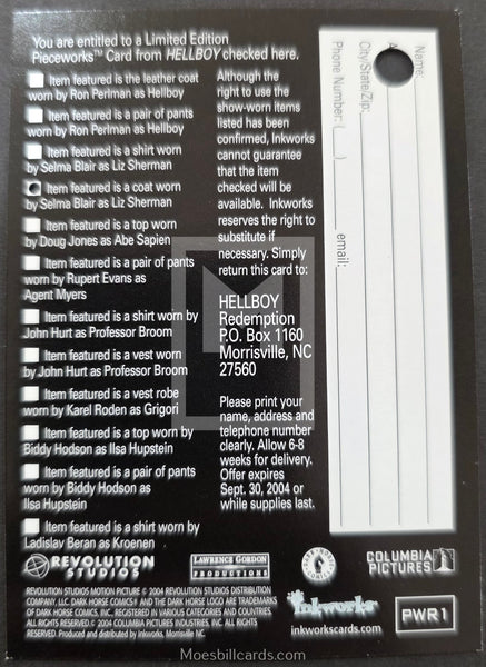 You are looking at an Pieceworks Trading card from Hellboy (Movie).