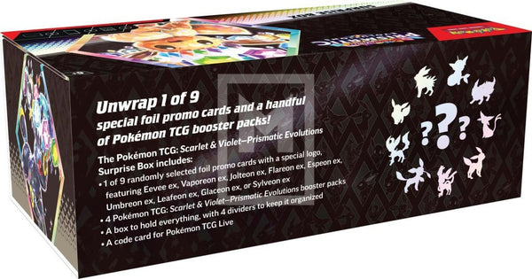 The Pokémon TCG: Scarlet & Violet—Prismatic Evolutions Surprise Box includes:
